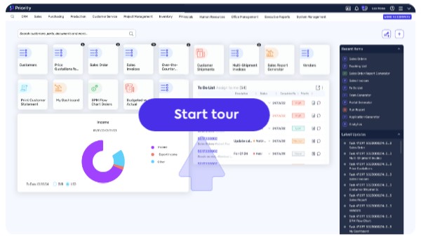 Priority ERP includes built-in workflows and AI recommendations to automate repetitive tasks and reduce manual errors. Its advanced analytics feature provides hundreds of pre-defined reports and no-code reporting tools, enabling businesses to make informed decisions and optimize operations. Source: Priority Software.